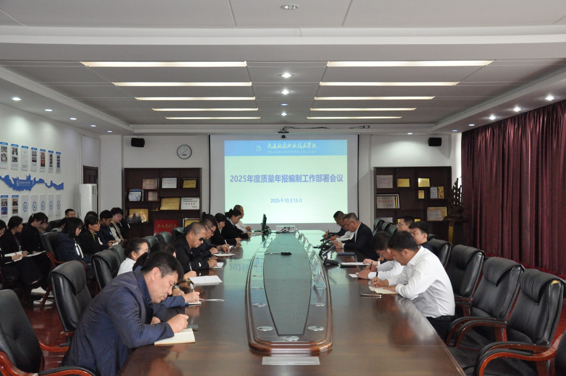 校长吴鹏对做好2025年度质量年度报告编制工作提出四点要求:一是要提高认识。质量年报是社会各界了解学校的重要窗口,是宣传学校高质量发展的重要载体,更是办学能力评价的重要依据,要站在国家职业教育发展政策和回应社会关注的高度上,做好质量年报的编制工作;二是要加强学习。既要深入学习教育部和省教育厅关于质量年报编制工作的相关文件,也要了解认清高职教育改革发展新形势,总结出学校改革发展的经验。另外,还要准确把握年报数据指标填报内涵,确保各项数据准确、真实、规范,通过数据如实展示学校建设成效;三是要压实责任。明确责任分工,提前布局,部门之间和部门内部都要加强协同,把工作任务落实落细,做到责任到人,确保各项工作按照时间节点要求如期完成;四是要凸显特色。各部门要充分总结工作成效,深度挖掘学校独特优势与办学特色,提炼一批高质量典型案例,形成高质量年报,彰显学校特色亮点和办学水平。
